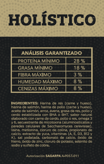 Nuestro producto Holístico, cuida el origen de cada uno de los ingredientes que conforman su fórmula para garantizar una alimentación sana y equilibrada, además de evitar problemas de alergias por ser un alimento libre de gluten.