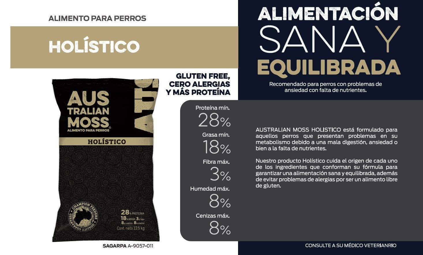 Australian Moss Holístico está formulado para aquellos perros que presentan problemas en su metabolismo, debido a una mala digestión, ansiedad o bien la falta de nutrientes.