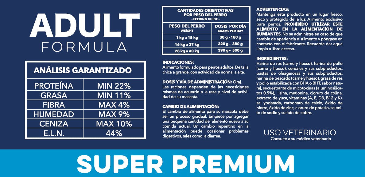 Recomendado en perros mayores de un año de edad para garantizar un óptimo desarrollo en la etapa de mantenimiento, en esta etapa, los requerimientos nutricionales son más bajos que en la etapa de cachorro, sin embargo, aún es cita de una fuente rica de proteínas de calidad y un porcentaje óptimo de grasa para mantener un buen estado de salud.
