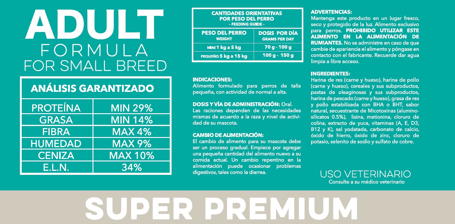 Recomendado para perros, en etapa adulta de talla pequeña (menor de 10 kg) con actividad física moderada a alta.