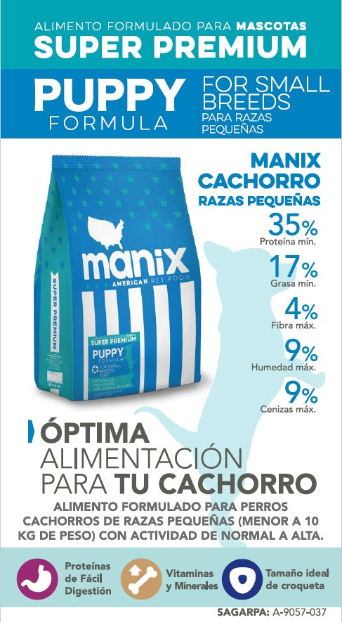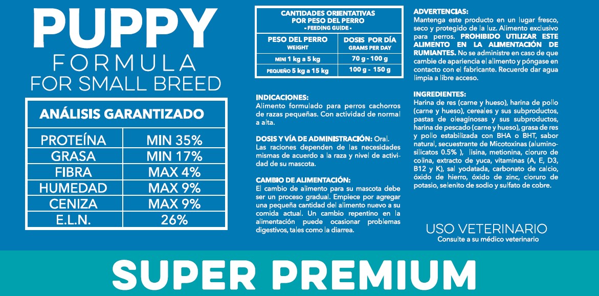 Un alimento formulado para perros cachorros de razas pequeñas con actividad de normal a alta. Es un alimento óptimo para perros también de pelaje abundante, ya que contiene altos porcentajes de proteína y grasa, además, el tamaño de nuestra croqueta permite que su cachorro le dijera y como de manera sencilla, sin lastimar su dentadura.