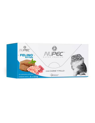 Carne y derivados de cerdo (hígado, pulmón, bazo) y/o pollo (retazo, hígado, corazón), agua suficiente para el proceso, aditivos técnicos (goma xantana, carragenina, goma de algarrobo, algarrobo), agentes palatantes (glicina), minerales (carbonato de calcio, cloruro de potasio), conservadores (nitrato de sodio), vehículos (harina de maíz, sepiolita, mezcla natural de esteatita y clorita, ácido silícico, sipernat) varios azúcares (dextrosa), aditivos nutricionales (taurina, vitamina E, sulfato de zinc monohidratado, vitamina B1, sulfato de manganeso monohidratado, biotina, sulfato de cobre pentahidratado, yodato de calcio anhidro).